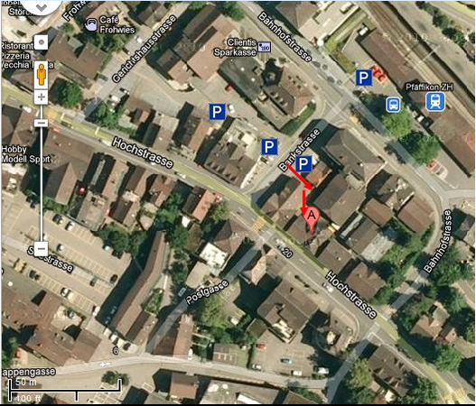 Parkieren können Sie an der Bankstrasse (aus Sicht vom Bahnhof her, auf der linken Seite) vor dem Mary's Hunde Shop auf den beiden Parkplätzen welche mit "Podologie